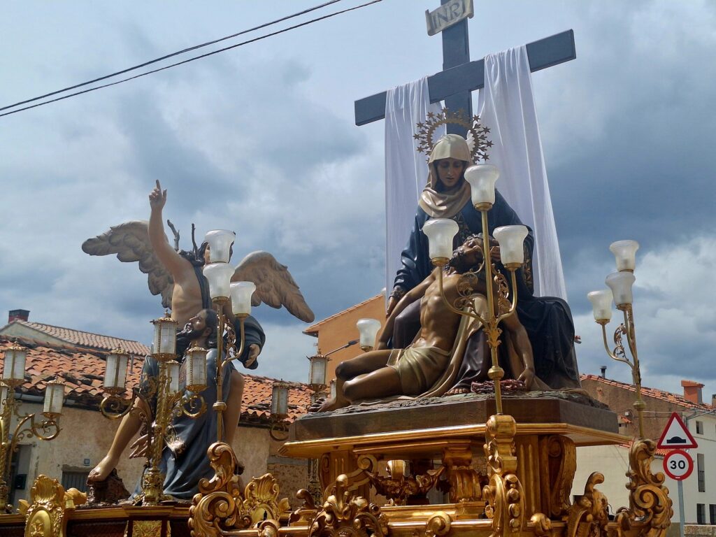 El traslado fue posible gracias a la colaboración desinteresada de voluntarios, los quintos y miembros de las diferentes mayoralías de este año, que unieron fuerzas para transportar los seis pasos que acompañarán las procesiones de los próximos días:
